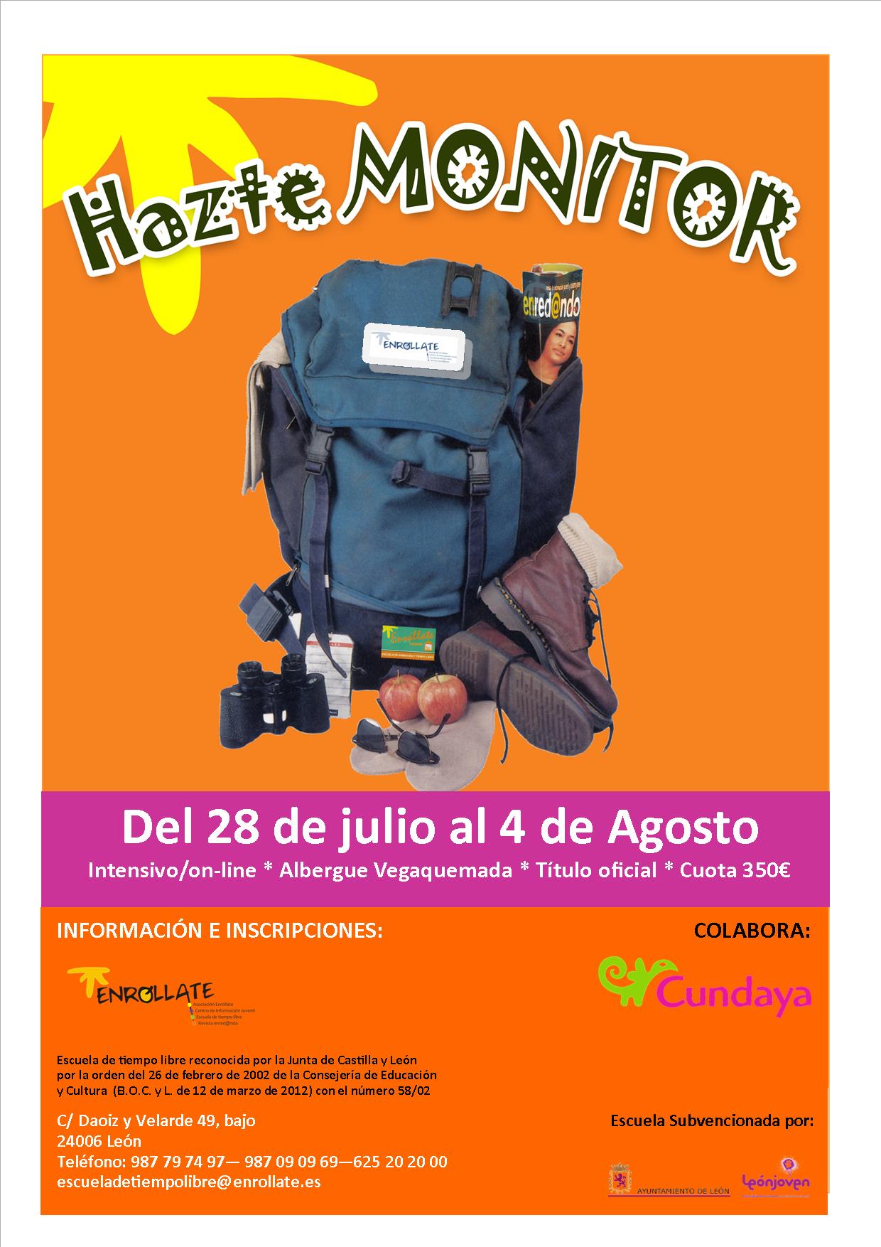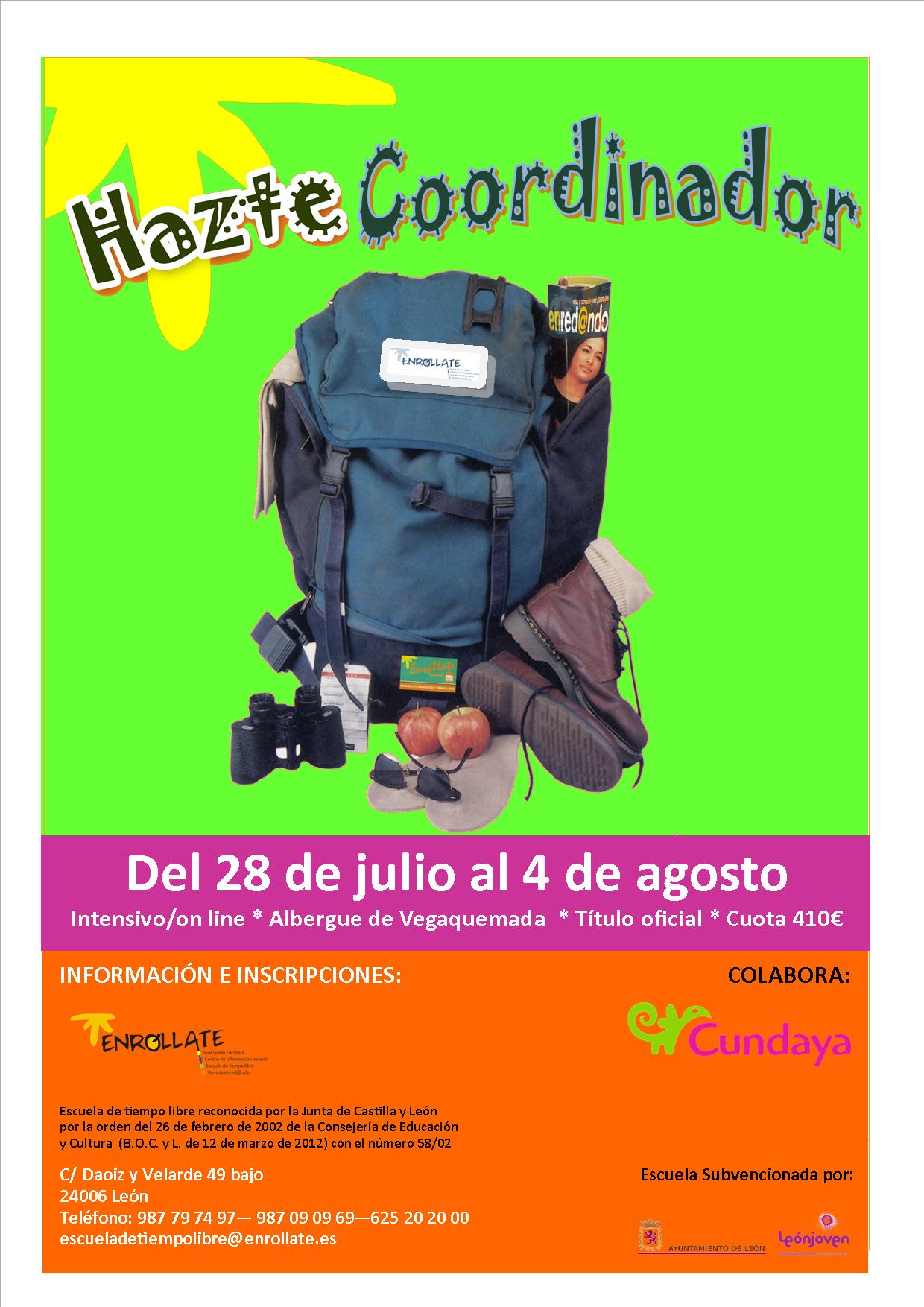 La Escuela de tiempo libre “Enróllate” (Escuela de tiempo libre reconocida por la Dirección General de Juventud de la Junta de Castilla y León mediante orden de la Consejería de Educación y Cultura de 26 de Febrero de 2002 (B.O.CyL de 12 de marzo de 2002) con el número 58) en colaboración con Cundaya ha organizado los siguientes cursos de tiempo libre.