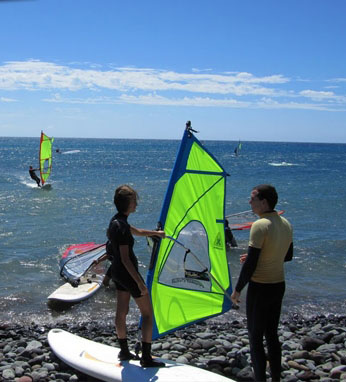 Actividad desarrollada en Pozo Izquierdo por una escuela de windsurf de reconocida fama, llegada a la playa a las 10:00 presentación del grupo y de la actividad, se comienza con una pequeña nociones de teoría del windsurf y se realizan juegos de aprendizaje en grupo y sobre las 11:00 de la mañana hasta las 13:00 se realiza la clase práctica en el mar.